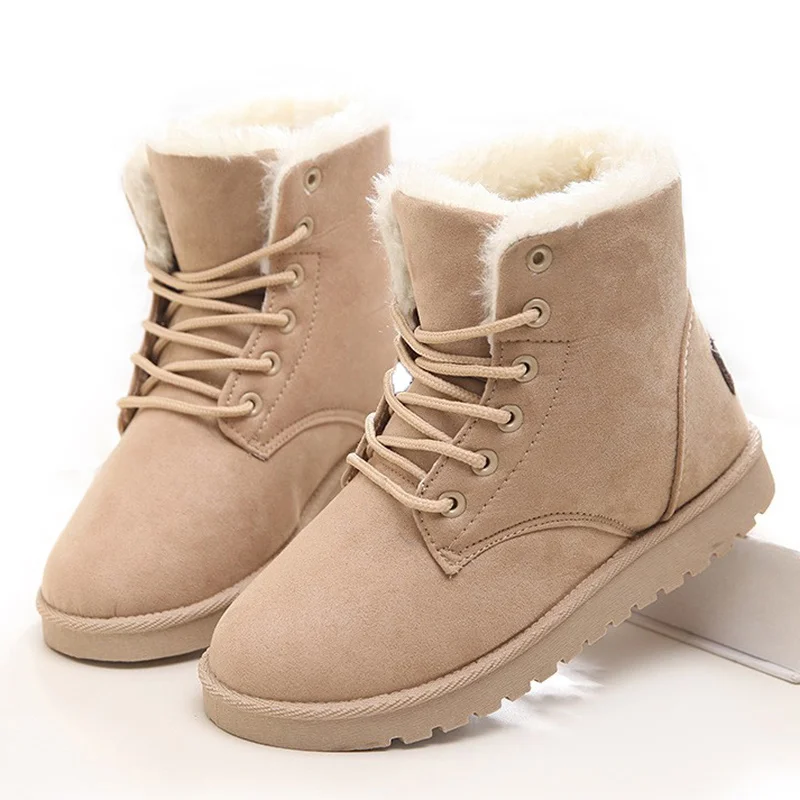 Женские ботильоны из флока, теплые ботинки для снега, зимняя обувь,...
