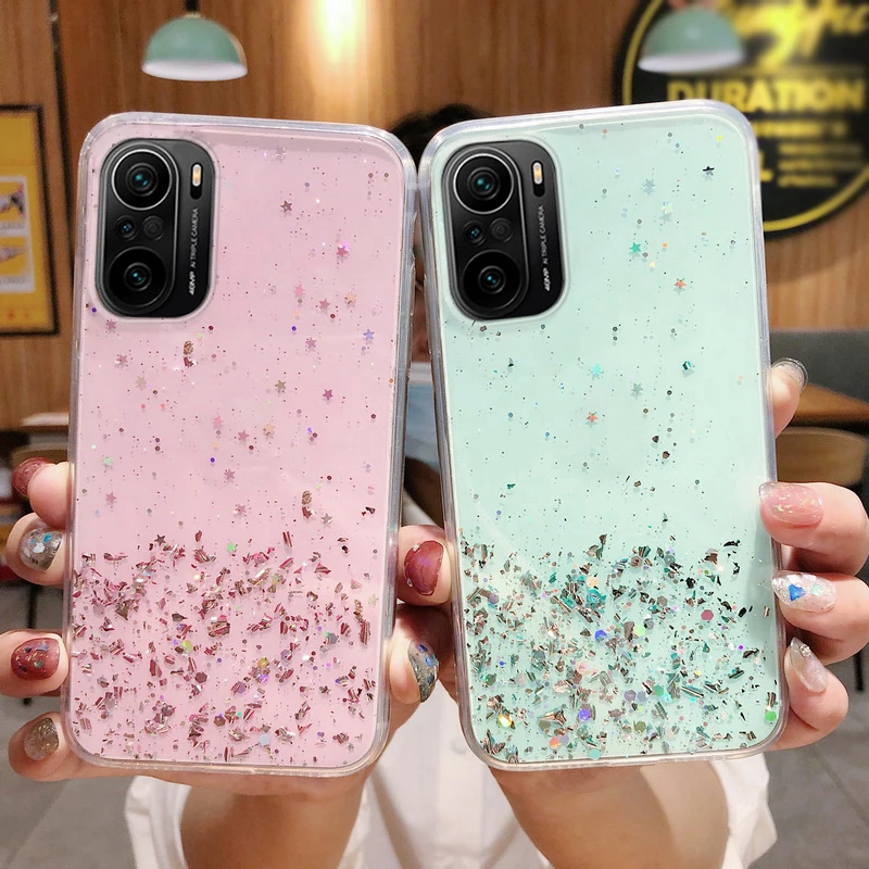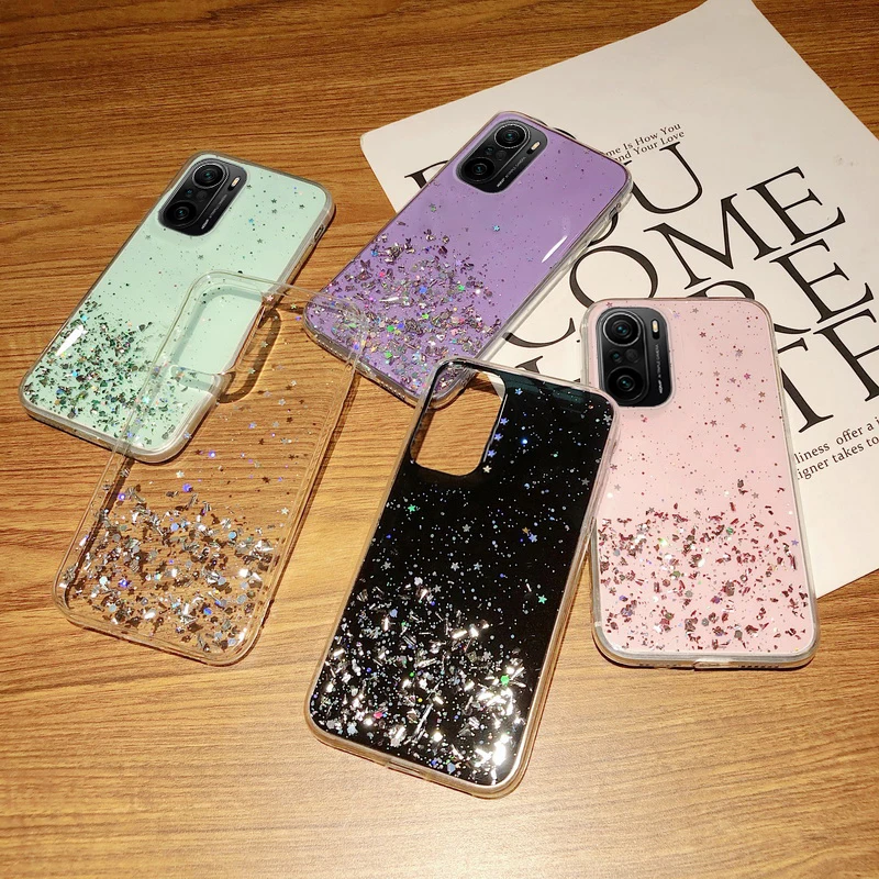 Блестящие lantejoulas clara volta capa macia para xiaomi poco f3 x3 nfc m3 redmi nota 10 4g 10s 9 8 pro 9s 8t mi 10t lite