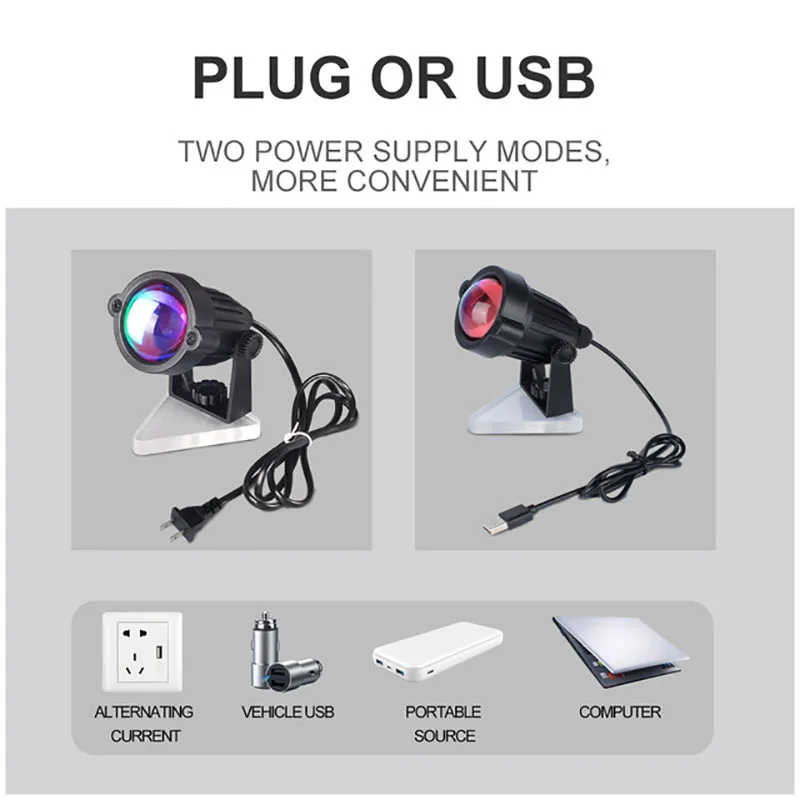 Usb Радужная проекционная лампа заката, светодиодсветодиодный атмосферная Ночная лампа, домашний кофейный бар, комнатный проектор, лампы, фонари s
