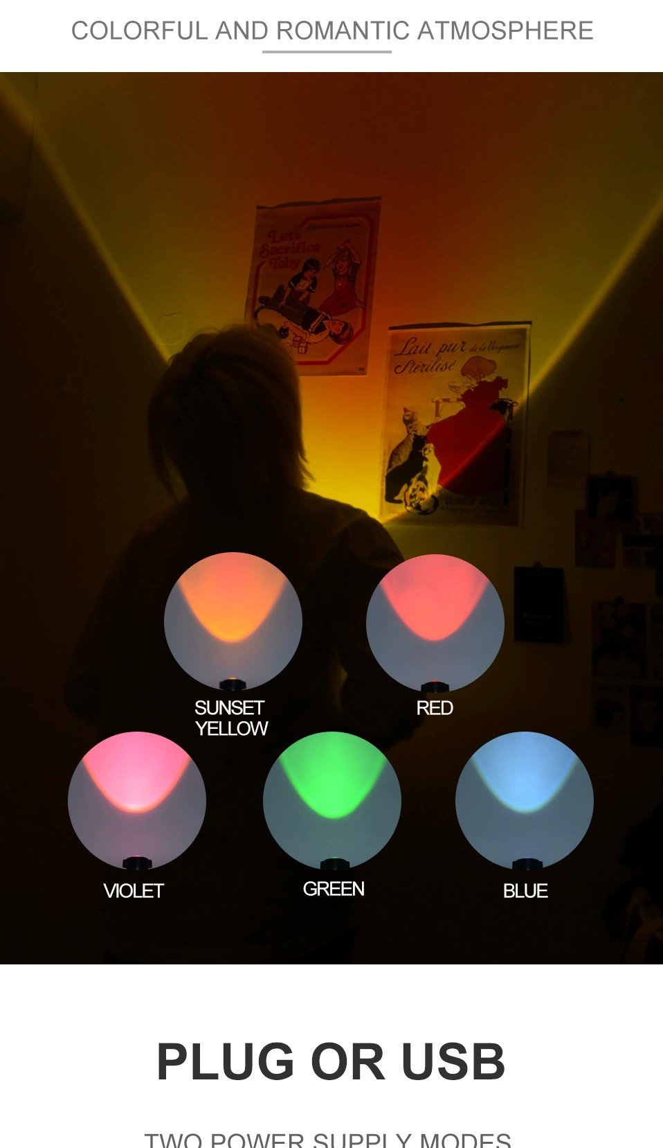 Светодиодный светильник с эффектом заката, светодиодный желтый прое...