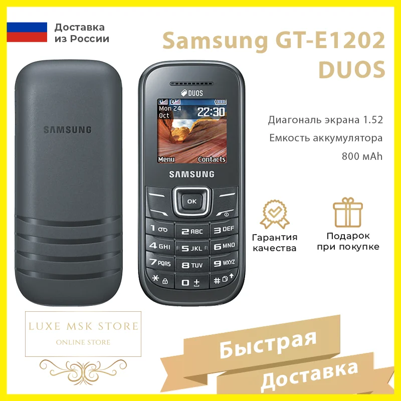 Аккуратный и компактный дизайнВ компактном дизайне телефона Samsung e1202 воплощена гармония формы и функциональности, в нем нет ничего лишнего. Дизайн контрастных цветов придает элегантность этому аккуратному моноблоку. Благодаря уникальной текстуре поверхности с дугообразными вырезами телефон отлично лежит в руке. Такое тонкое и компактное устройство будет удобно носить с собой повсюду. Кроме того, Samsung e1202 может работать с двумя SIM-картами одновременно.Простой и удобный в использованииБлагодаря прорезиненной и пылезащитной клавиатуре телефон Samsung e1202 всегда останется чистым и будет выглядеть как новый. Удобная пятипозиционная навигационная Кнопка обеспечивает быстрый доступ к наиболее часто используемым функциям. Например, чтобы открыть журнал вызовов или список контактов, просто нажмите одну кнопку.Дисплей высокого качестваЯркий, легко читаемый дисплей Samsung e1202 с четким изображением и насыщенными цветами делает использование телефона чрезвычайно удобным. Улучшенный пользовательский интерфейс с продуманной компоновкой элементов обеспечивает удобную навигацию по меню и функциям. Кроме того, мощный аккумулятор увеличивает время работы устройства без подзарядки.Mp3-рингтоныВы можете назначить входящие звонки и сообщения мелодичному mp3-ringtone.
