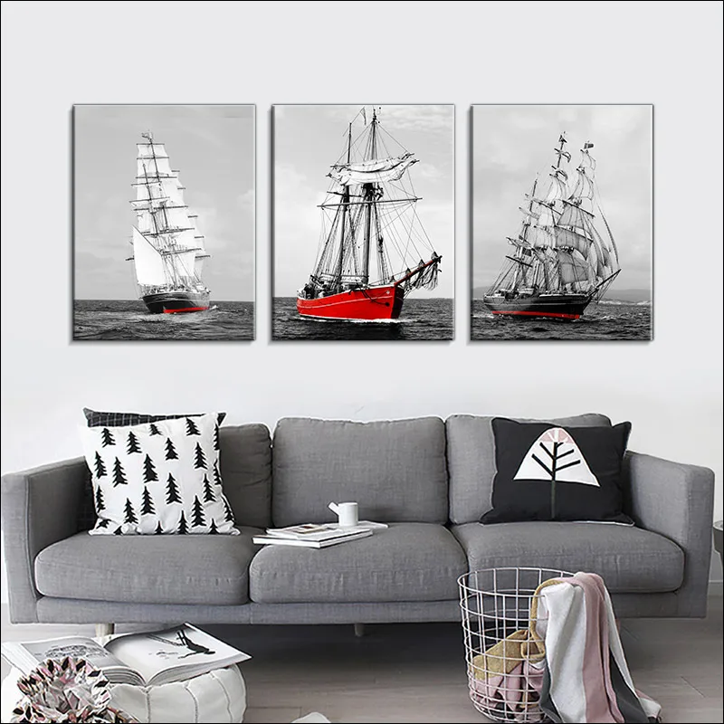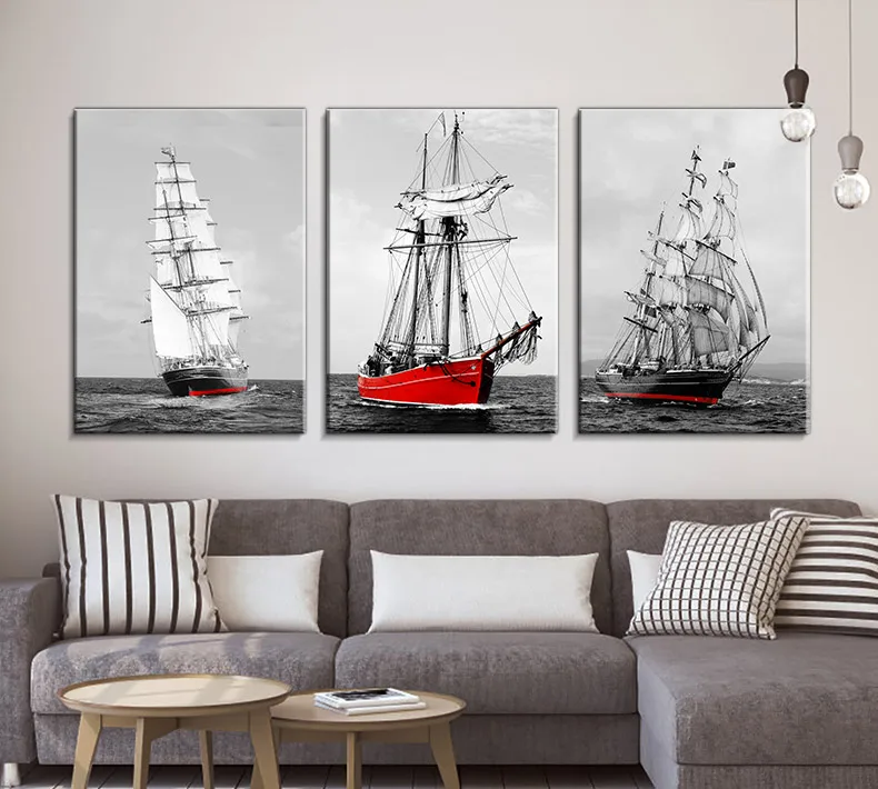 Современная Настенная роспись, современный город, плакат с рамкой, черно-белый, океан, Парусная печать, Картина на холсте с рамкой, утолщенная
