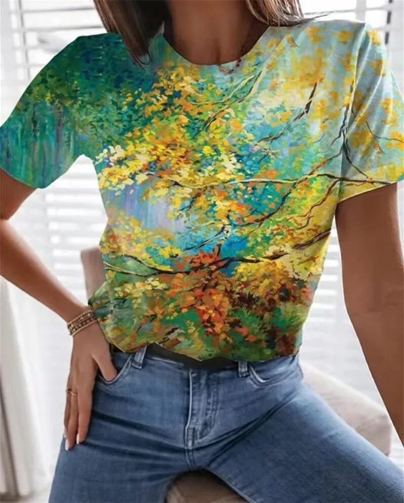 Женская футболка с 3D принтом растений, модная футболка с круглым в...