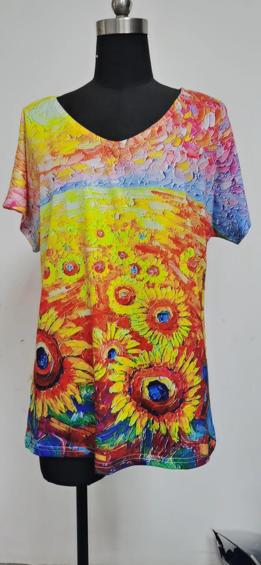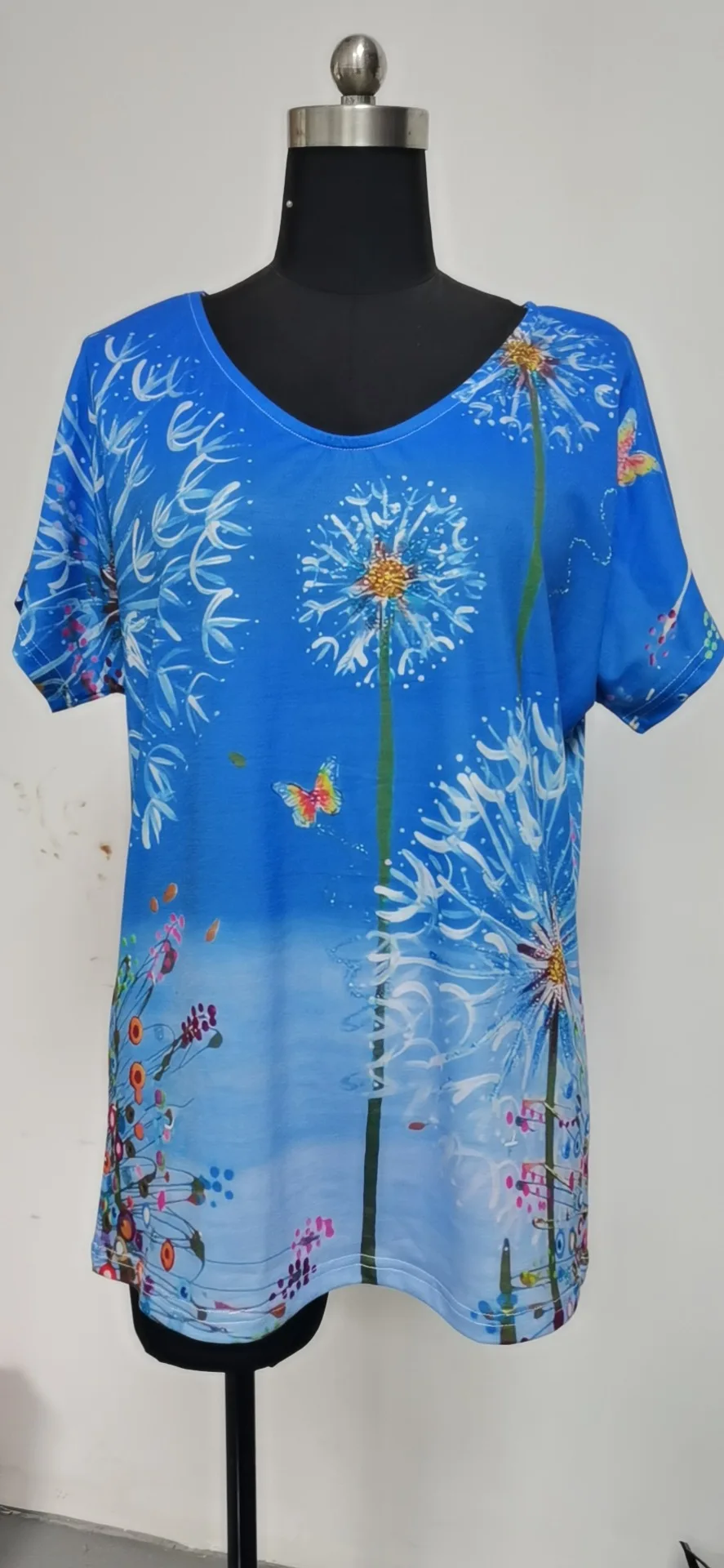 Женская футболка с коротким рукавом и цветочным принтом, размеры до 3XL