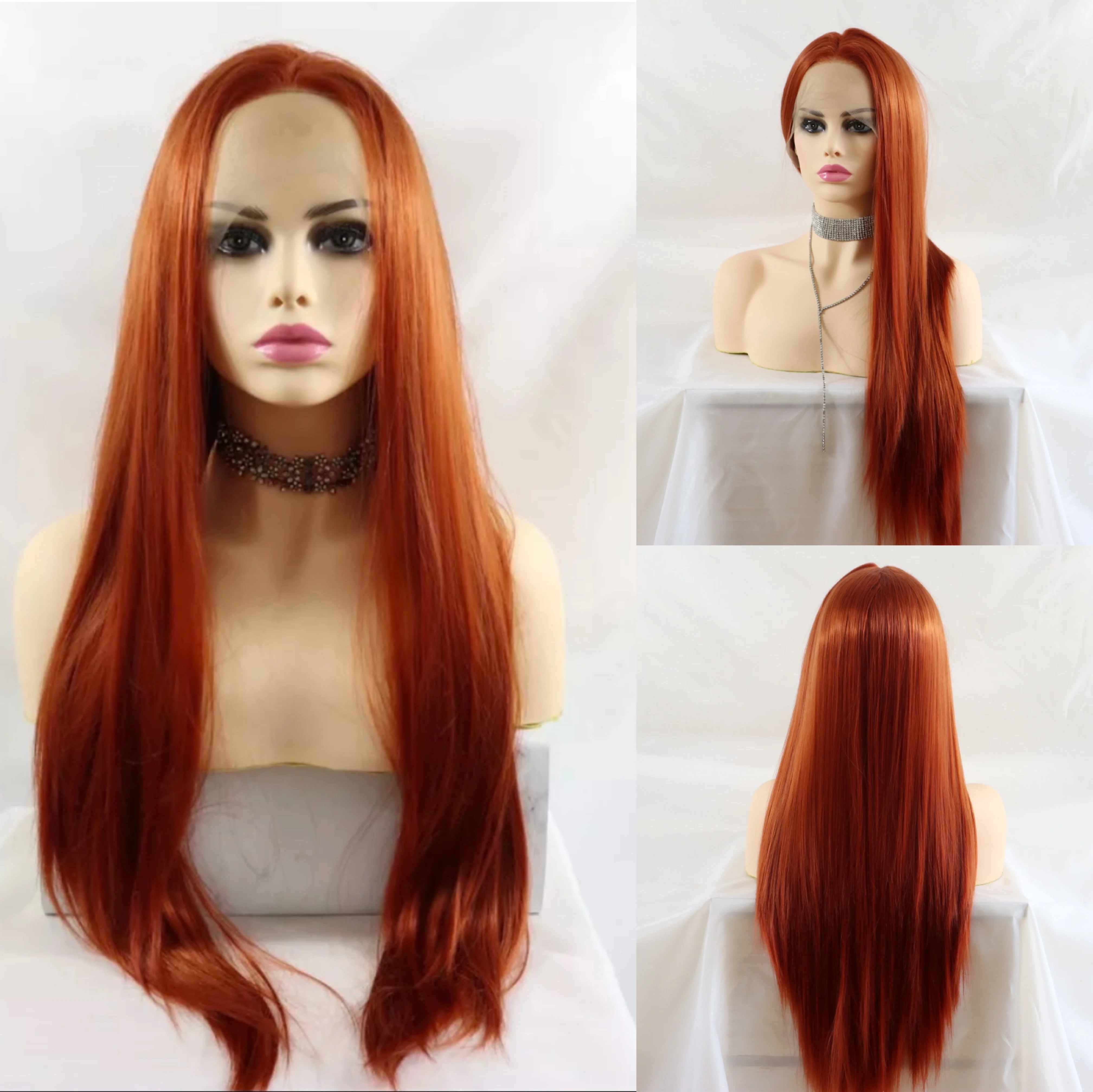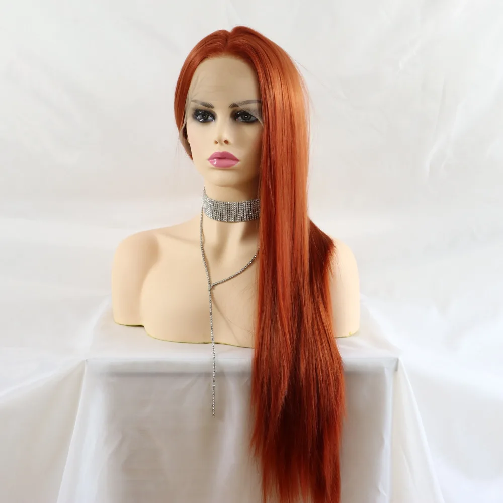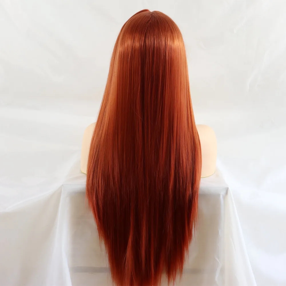 Meinmod Длинные Прямые Медные красные синтетические кружевные передние парики натуральный вид высокотемпературные волоконные модные парики для женщин