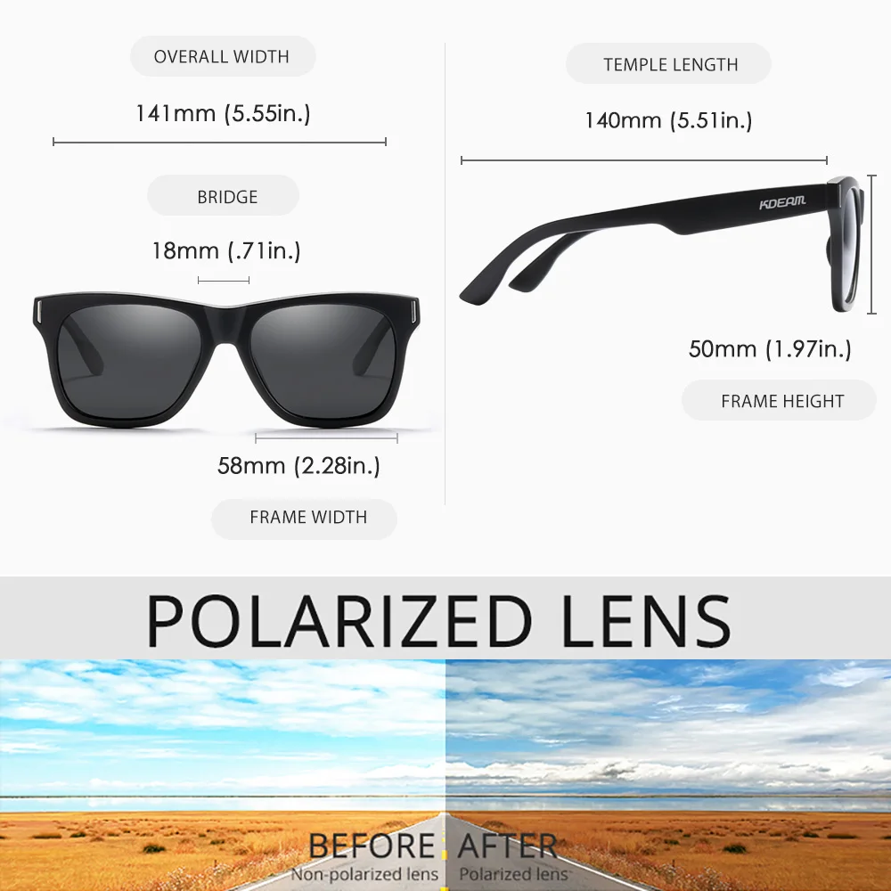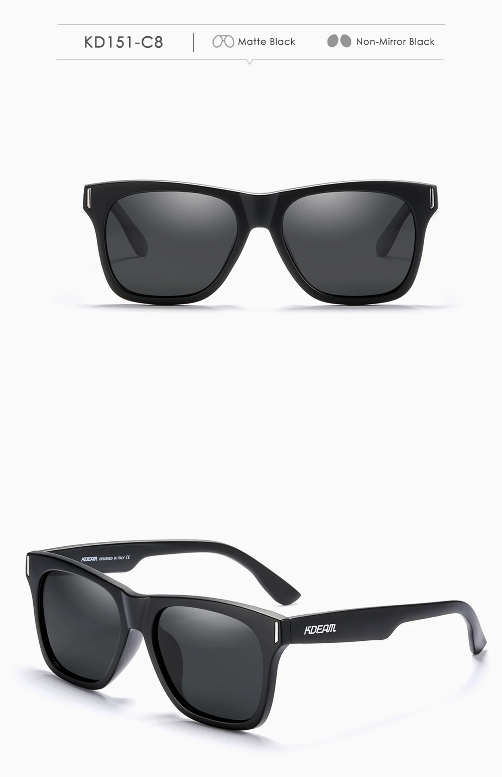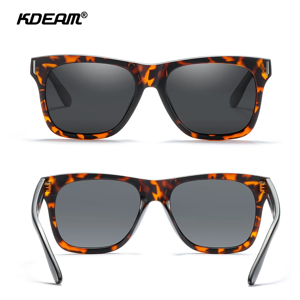 KDEAM, новинка 2021, квадратные поляризованные солнцезащитные очки, мужские Разноцветные солнцезащитные очки с покрытием, все черные оттенки, коробка на молнии, в комплекте, Cat.3 CE