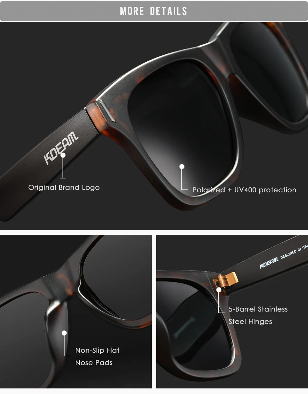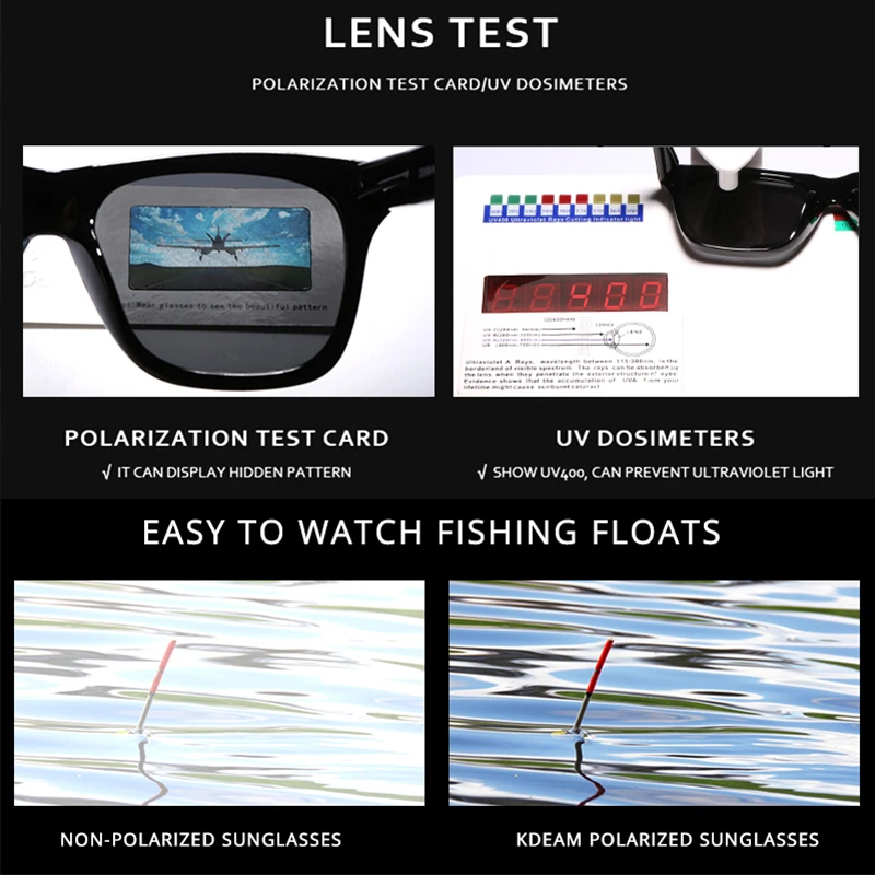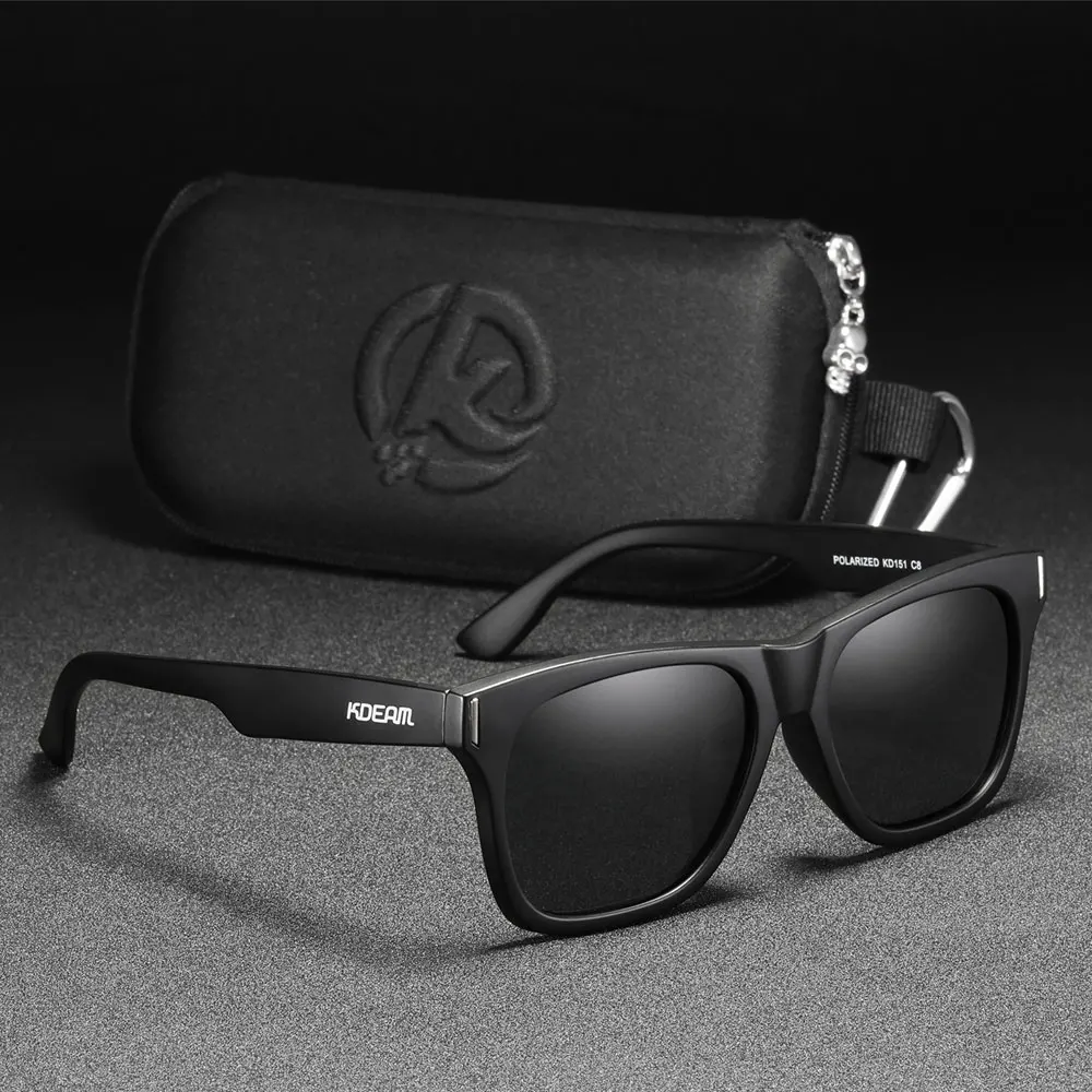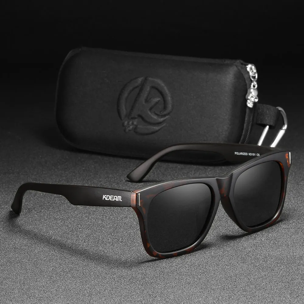KDEAM, новинка 2021, квадратные поляризованные солнцезащитные очки, мужские Разноцветные солнцезащитные очки с покрытием, все черные оттенки, коробка на молнии, в комплекте, Cat.3 CE