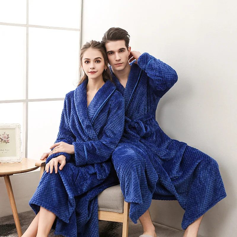 Осенне-зимняя махровая одежда для сна, халат для влюбленных, толсты...