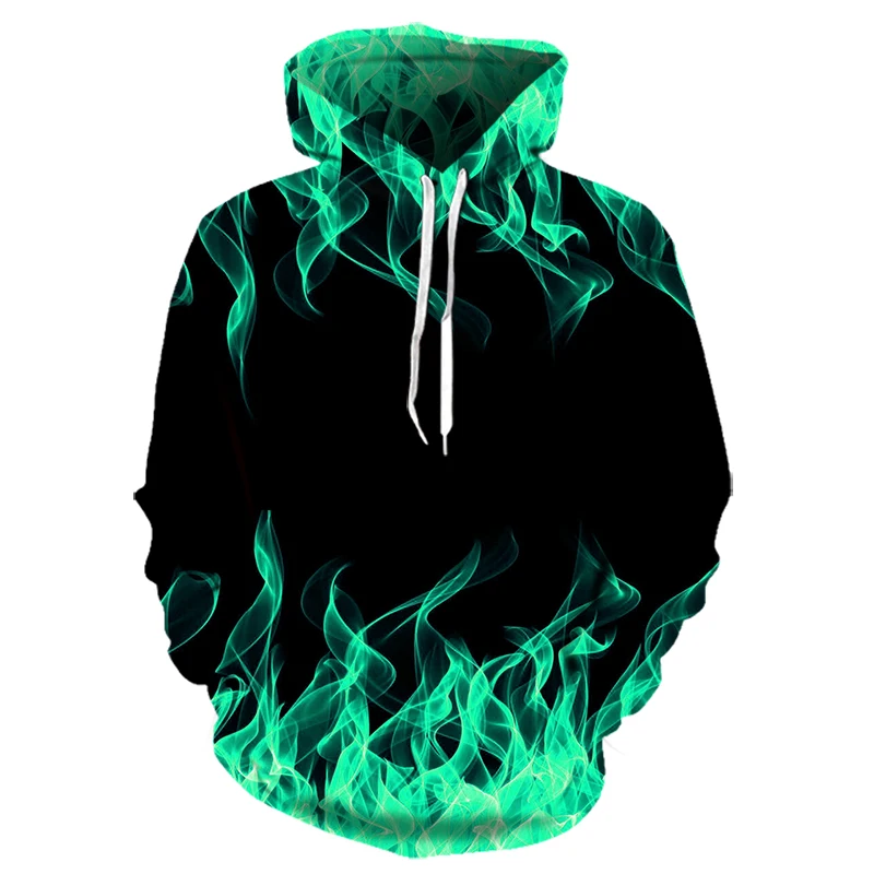 Мужская толстовка с капюшоном и принтом зеленого пламени, худи с 3D...