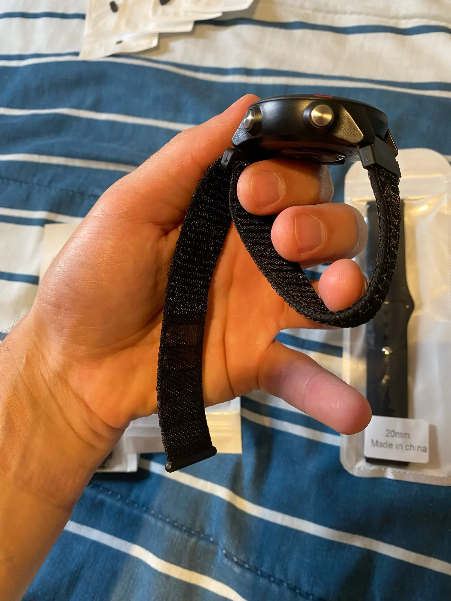 Ремни идеально подходят, и так как они сделаны из ткани, они не вызывают никакой аллергии или повреждения, чем если бы я сделал оригинальный резиновый ремешок. Доставка была не очень быстрой, но прибыла, что важно.