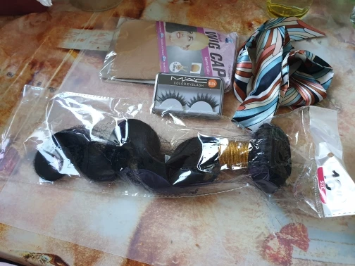 I love this hair ! I forgot to take a picture of it in the package but it did come with a pack of wig caps ! The hair is soft , with no smell ! No shedding .
