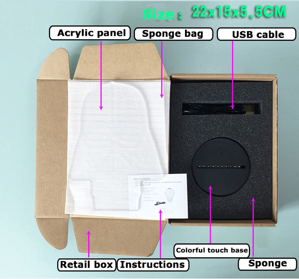 -Издалека, это блестящая 3D Ночная лампа. С близкого расстояния это технологическое чудо. Лампа с 3D оптической иллюзией излучает светильник в великолепной 3D форме, которая поразит ваших гостей. Это создает 3D стереоскопический эффект, лазерная скульптура, пропускающая более 98% светильник, светодиодный ночник