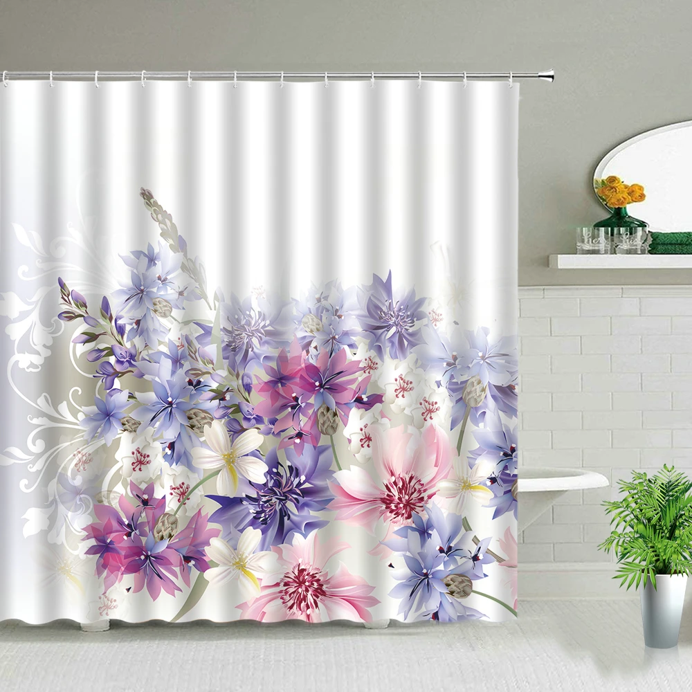 Красивые Весенние фиолетовые розовые акварельные занавески для душа в ванную комнату макияж для украшения дома