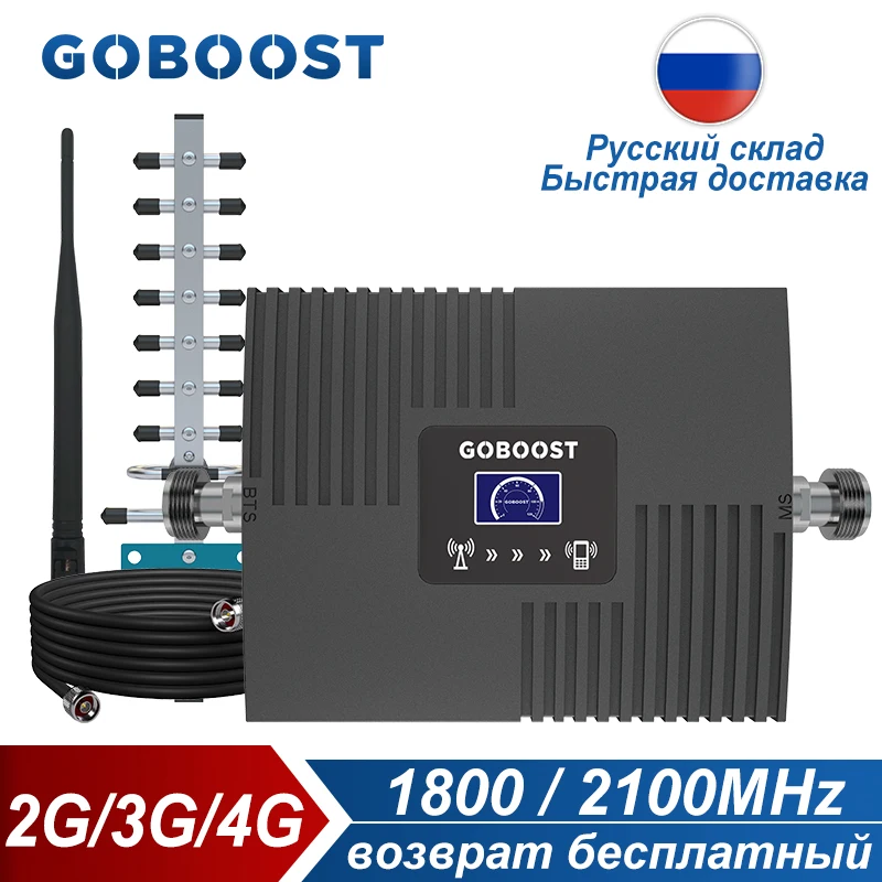 Усилитель сигнала GOBOOST 2G 3G 4G DCS 1800 UMTS 2100 МГц, усилитель сотовой связи Band 1 3, повторитель мобильной сети с комплектом антенн