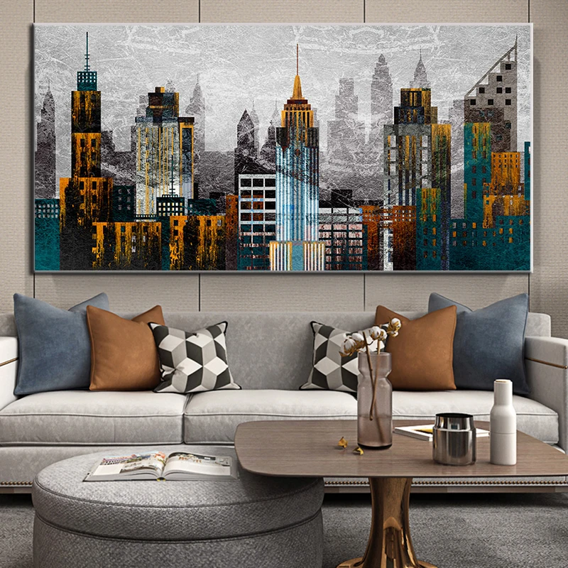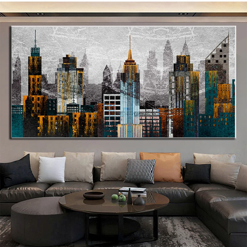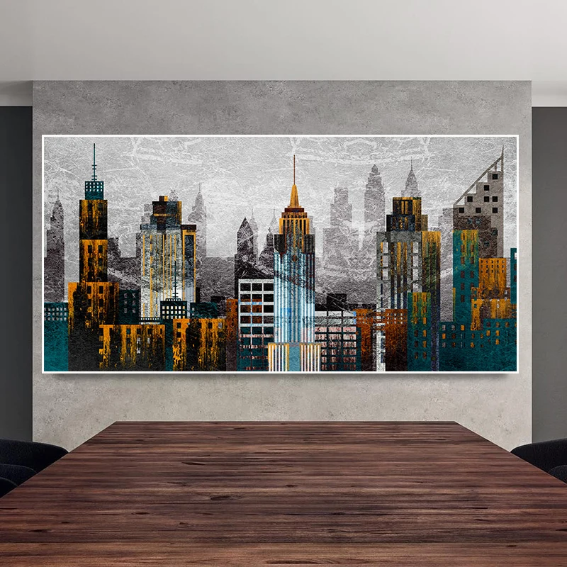 Нью-Йорк скребки Современная Абстрактная живопись плакат печать HD ...