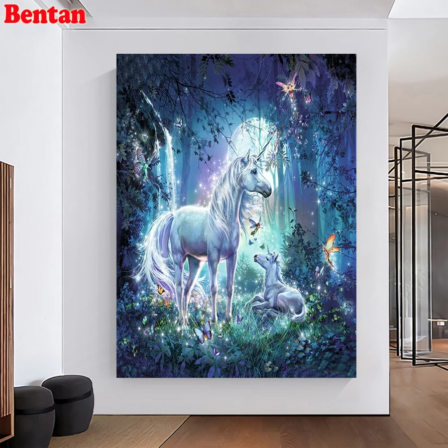5D Diy Алмазная картина Единорог фантазия лес Луна Пейзаж полная дрель Алмазная вышивка мозаика Стразы картинки