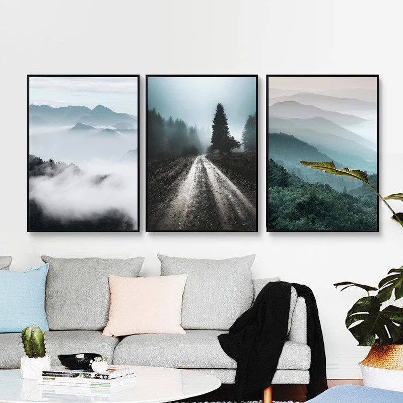 Настенная картина с изображением пасмурной горы и леса, теплая картина с пейзажем в скандинавском стиле, повседневный Декор для гостиной