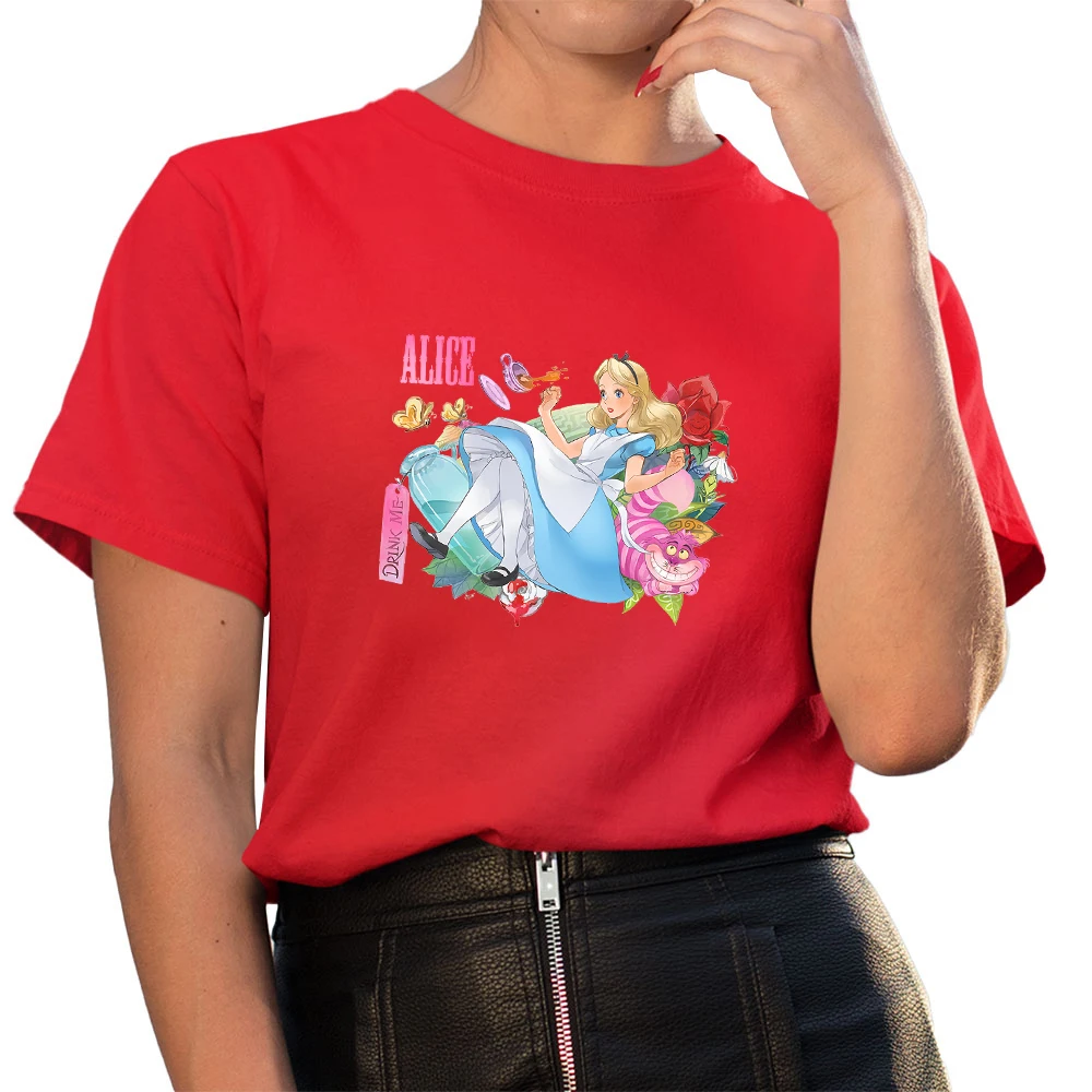 Летняя футболка с милым принтом Алисы в стране чудес, женские футбо...