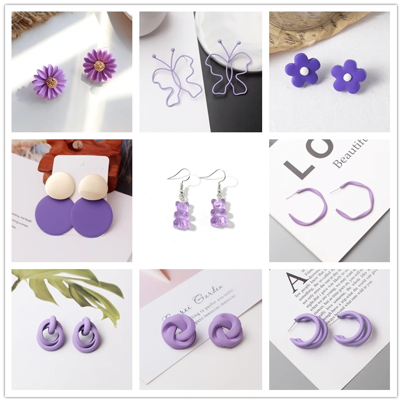 Taro, фиолетовая искусственная кожа для женщин, летние свежие и крутые маргаритки, цветок, сердце, витые серьги, милые свадебные украшения