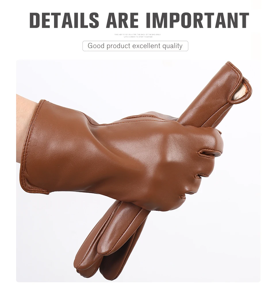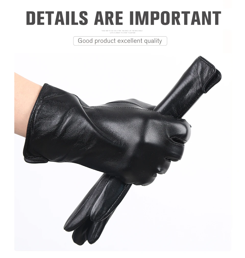 Модные аксессуары зимние черные кожаные перчатки для мужчин, удобны...