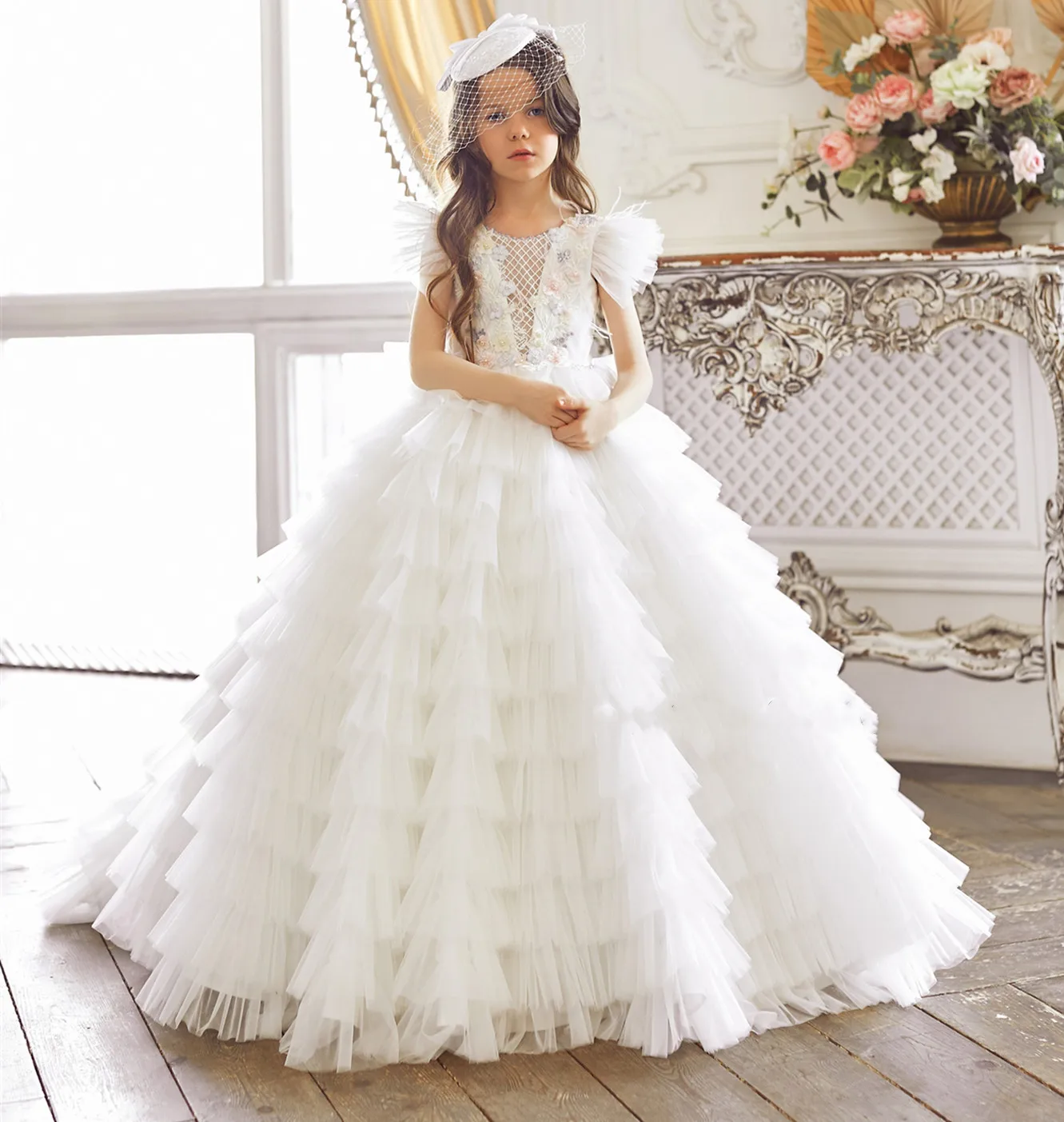 Пышные платья для девочек с цветами на заказ, многослойное Тюлевое ...