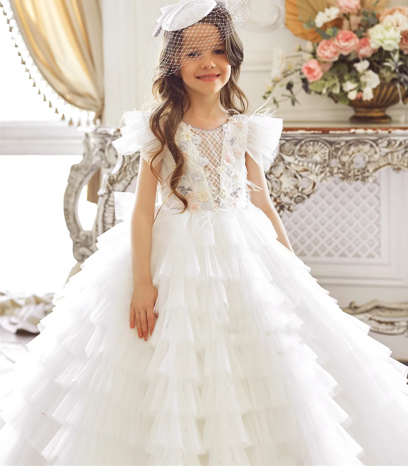 Платье для девочек Amaya, белое пышное, с цветочным рисунком, круже...