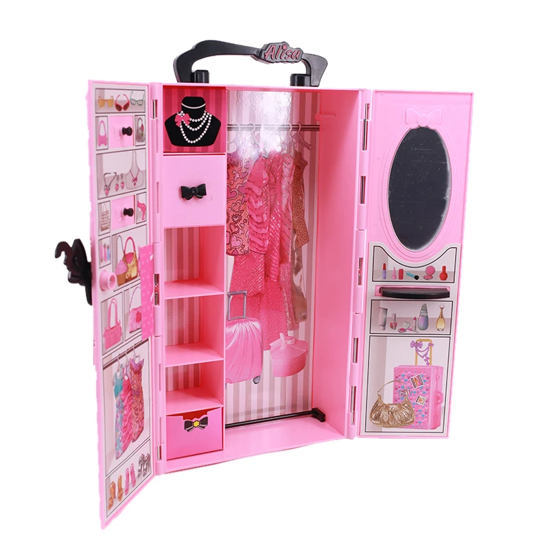 Шкафчик Барби для девочек, портативный шкаф для хранения, шкаф + ак...