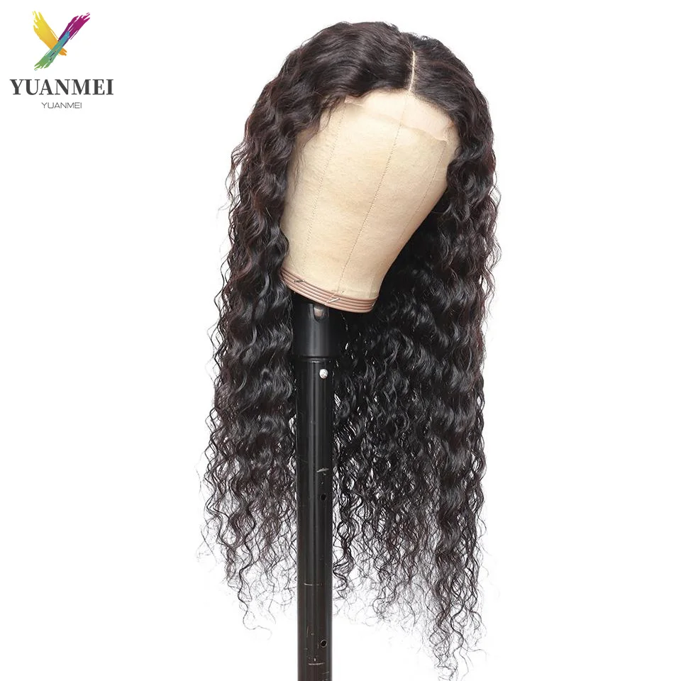 YUANMEI, парики с глубокой волной для женщин, бразильский парик из человеческих волос на сетке спереди, T-образный парик с предварительно выщипанной сеткой, парик с застежкой 4X4