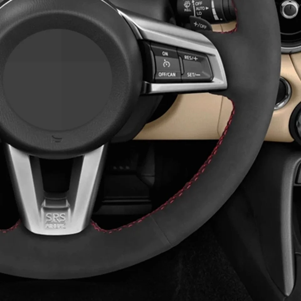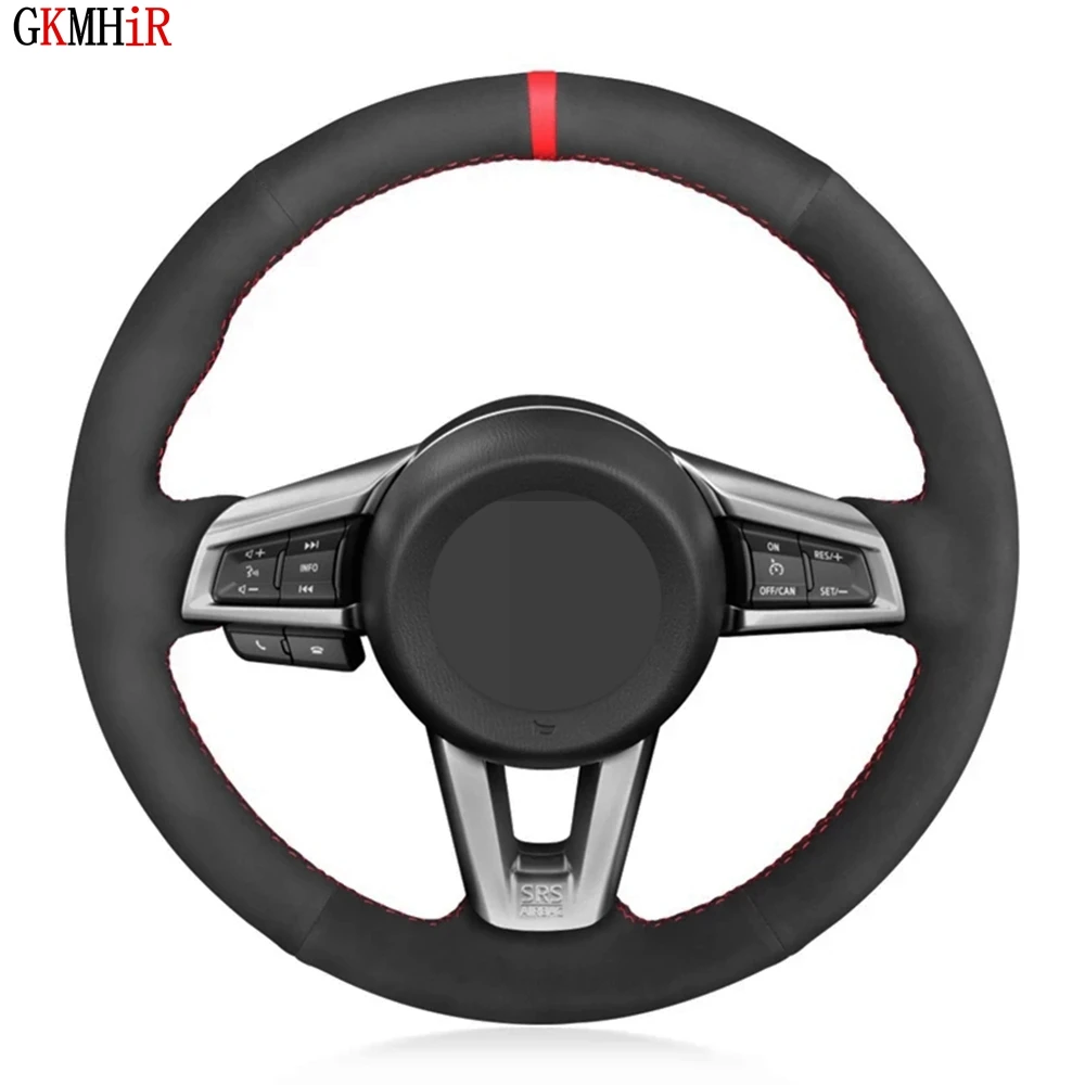 Прошитая вручную мягкая черная замша из натуральной кожи для Mazda чехол рулевого колеса автомобиля MX5 2016 2017 2018 2019
