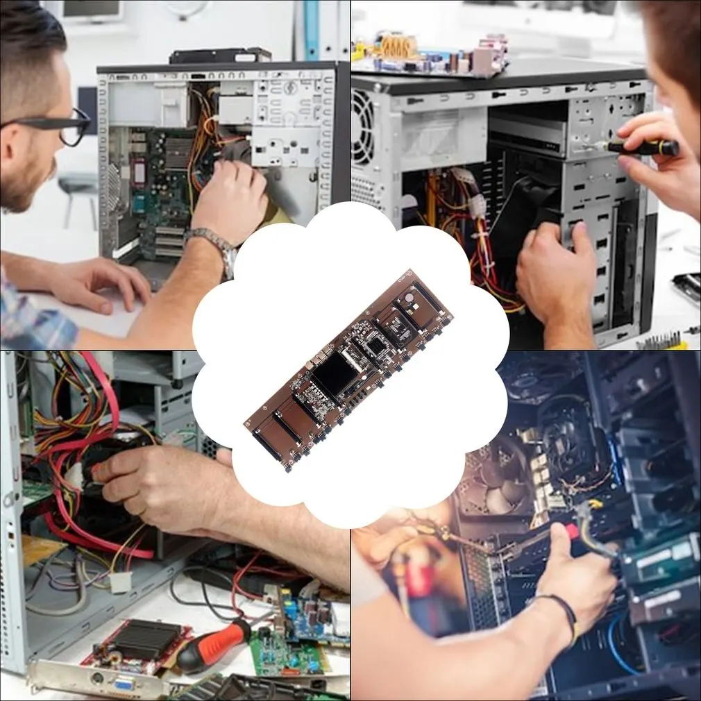 Эта материнская плата BTC совместима с обычными картами майнинга, такими как: серия RX, серия GTX10, серия gtx20, серия gtx30 и т. Д., И материнская плата использует разъем питания 16*6 pin PCIe 12v.