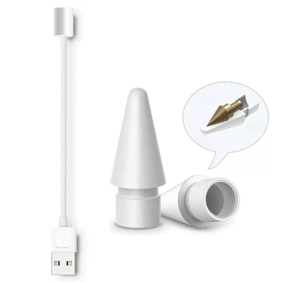 Запасные наконечники для карандаша iPad, USB-кабель, совместим с Apple Pencil 1-го 2-го поколения, запасные наконечники для карандаша Apple