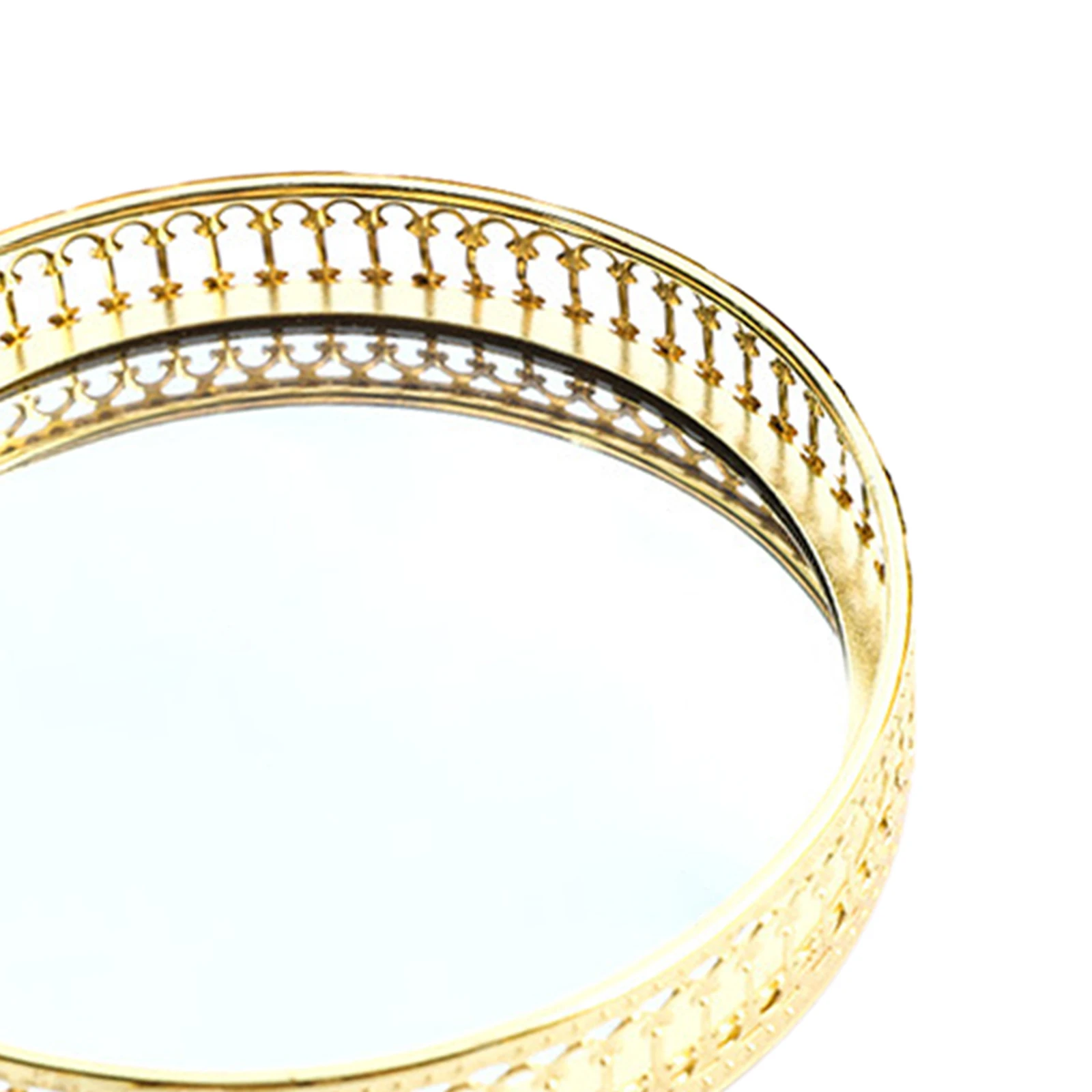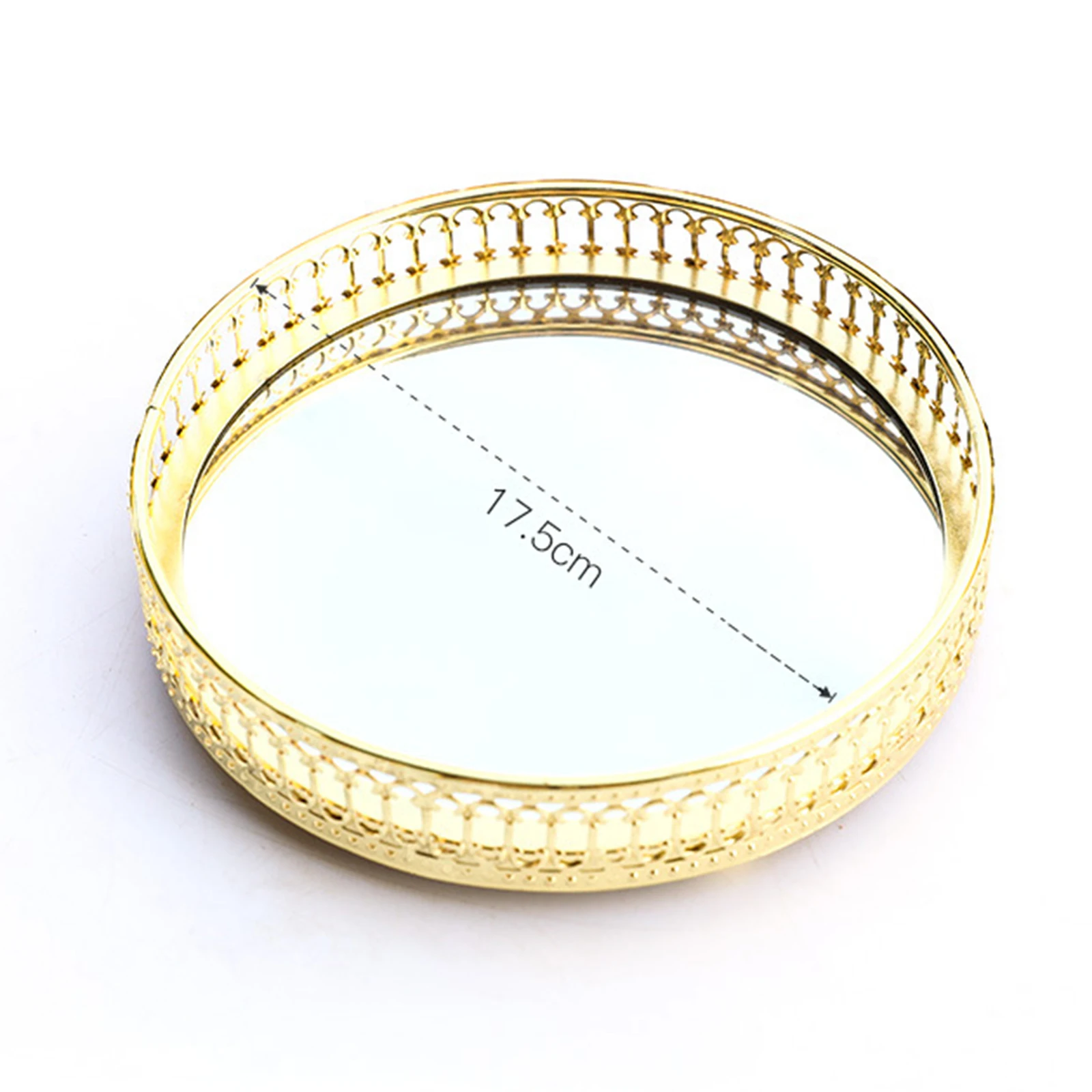 Поднос для духов, ювелирных изделий, зеркальный поднос, декоративный поднос с круглым золотистым металлом для туалетной комнаты, спальни, столешница, Органайзер