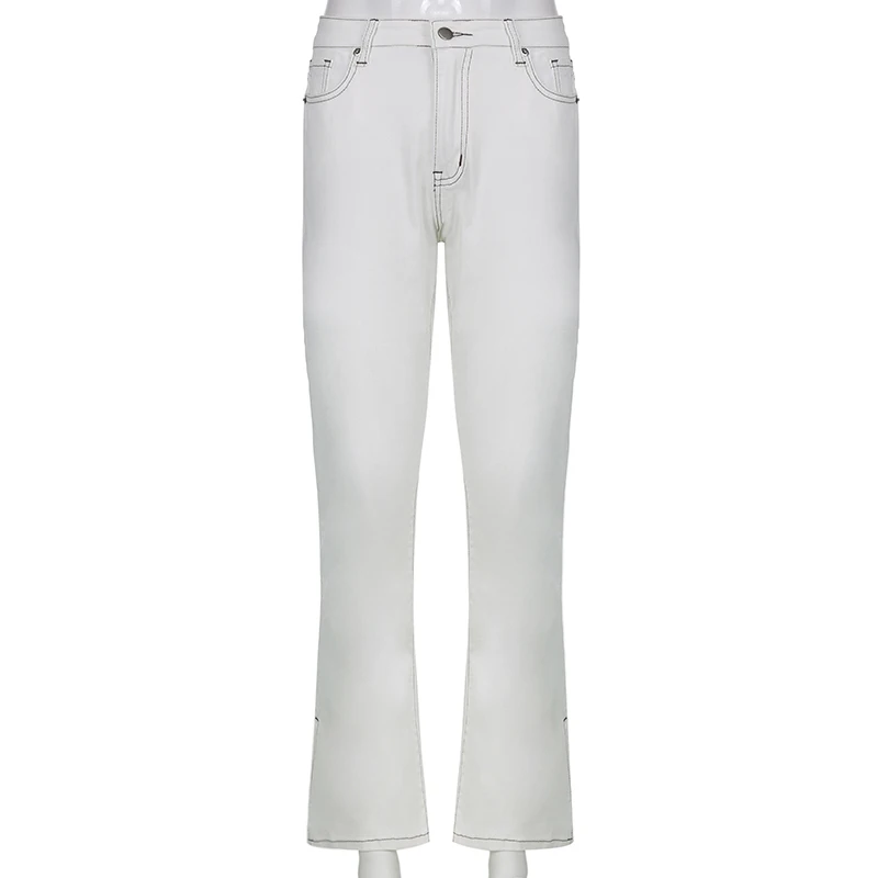 Стильные белые джинсы Y2K Для Девочек, Модные Винтажные брюки с высокой талией, прямые женские джинсовые брюки с разрезом, уличная одежда, 2021