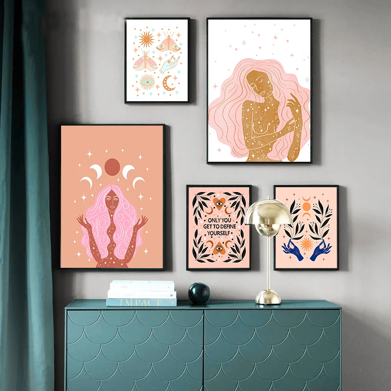 Скандинавская настенная живопись на холсте, богемная живопись, волшебная луна, постеры "солнце" год, принты, фрески для домашнего декора