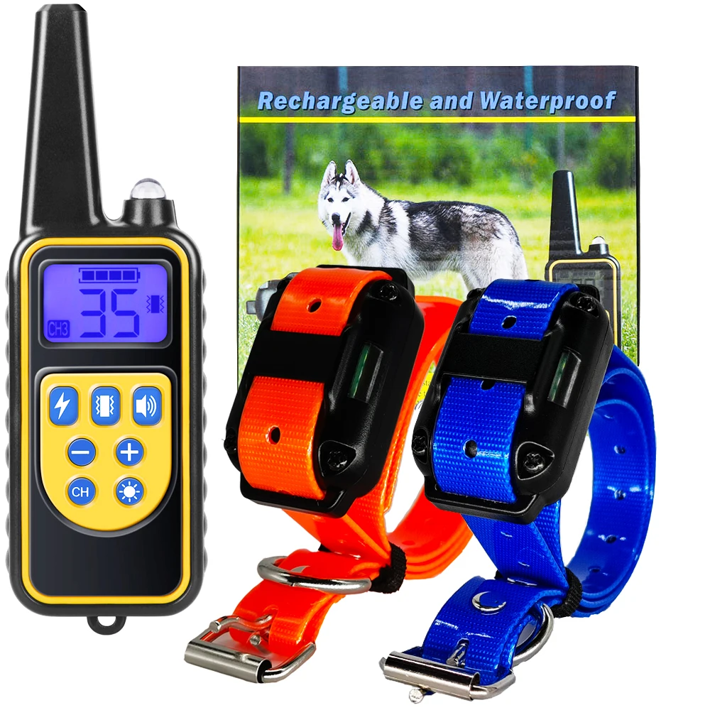 Электрический тренировочный ошейник для собак 800 м, водонепроницаемый, с дистанционным управлением, с перезаряжаемой вибрацией и ЖК-дисплеем, подходит для всех собак