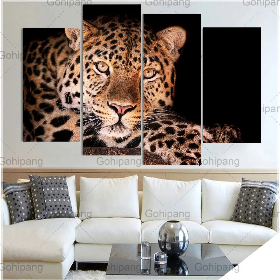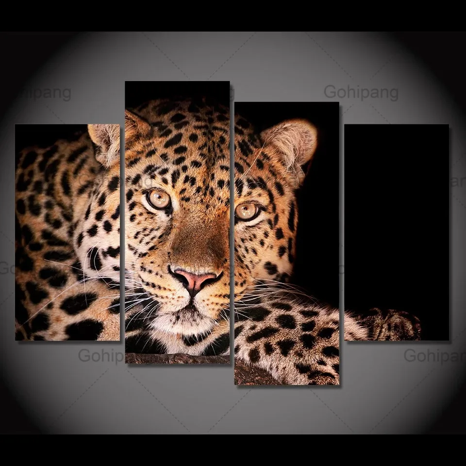 Современный стиль, леопардовые пятнистые животные, HD печать, 4 шт., холст, живопись, плакаты и принты, настенные картинки для декора гостиной