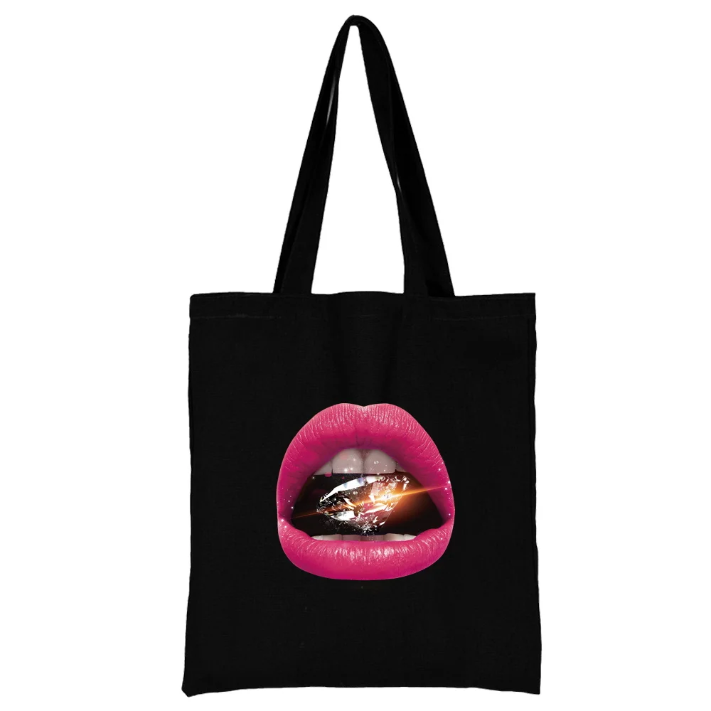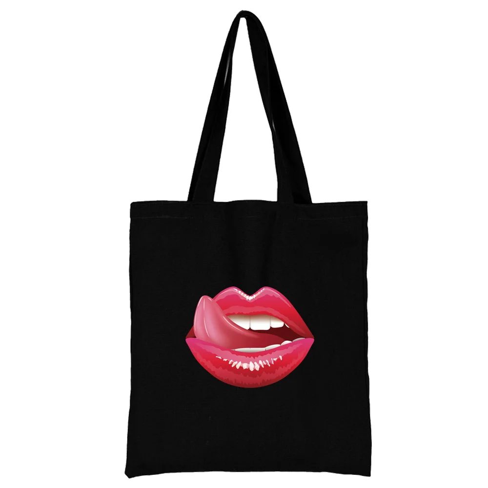 Сумка для покупок Женская, трендовые портативные мессенджеры на одно плечо с сексуальными губами, вместительные складные многоразовые мешки для покупок