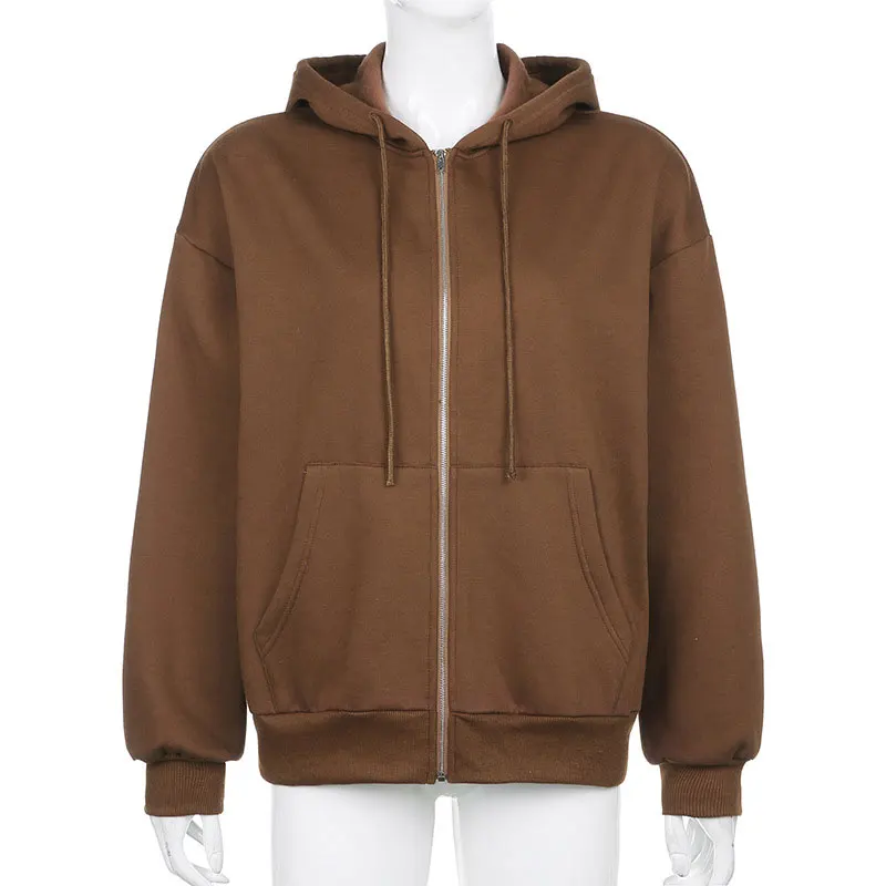 Коричневые худи Y2K, Женская винтажная толстовка на молнии, зимняя ...