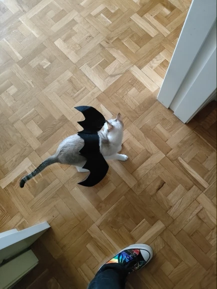 Прикольная штукенция. Котику подошло хорошо. НО! Я ожидала, что качество будет другое. Одна липучка приклеилась к крылу, и КРЫЛУ ПИ3ДА насатала, сильно растрепалось все, придется ножницами подстригать эти припе3дыши. Ну я не знаю что за ткань, но похожа на войлок какй-то. Я не разбираюсь в таких вещах. Ну за 150 рублей нормас думаю Спасибо