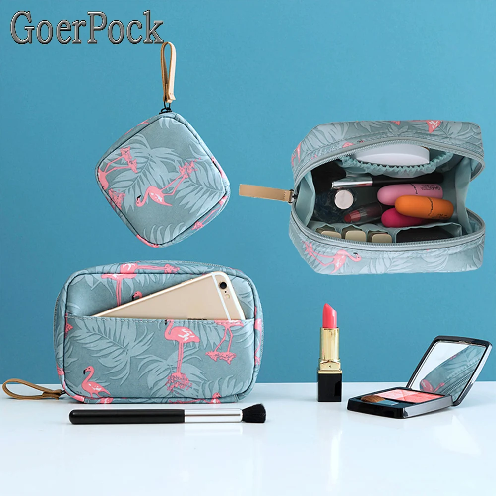 Модная миниатюрная однотонная сумка для макияжа с фламинго, сумка д...