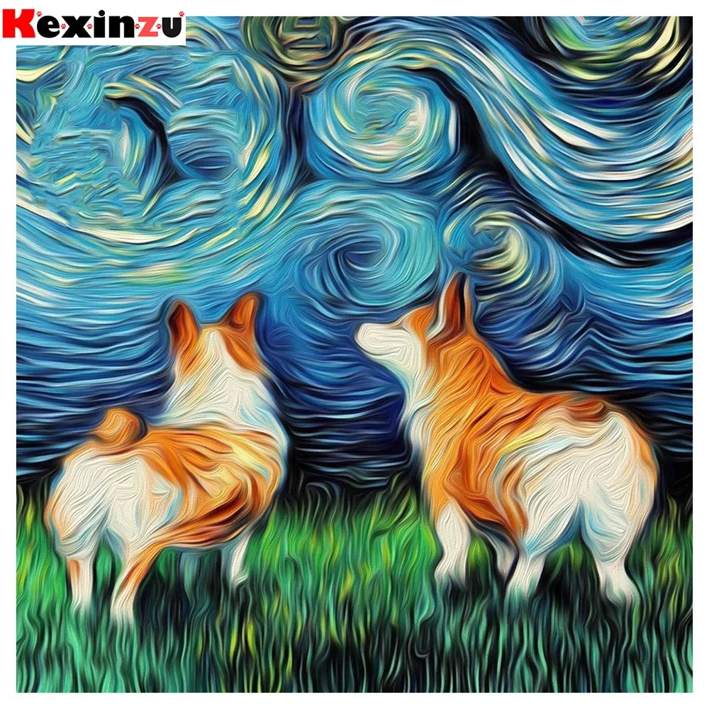 5D алмазная живопись сделай сам, звездное небо, картина маслом, собака, полная вышивка, Алмазная мозаика с животными, стразы, свадебное украшение