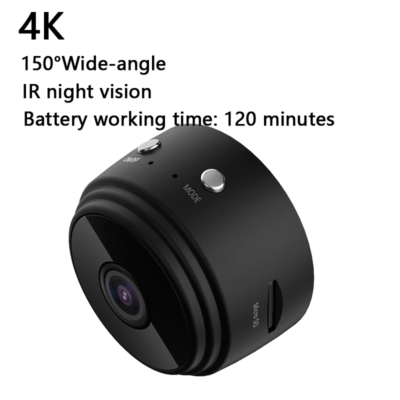 Мини-камера 4K Wi-Fi, микро-камера ночного видения, широкоугольная веб-камера с углом обзора 150 и датчиком движения, дистанционное управление через приложение, камера на 128 ГБ