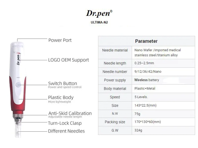 Профессиональная ручка Dr. Pen Ultima N2 для микроочистки, беспроводные электрические инструменты для ремонта кожи с 6 12-контактными сменными картриджами