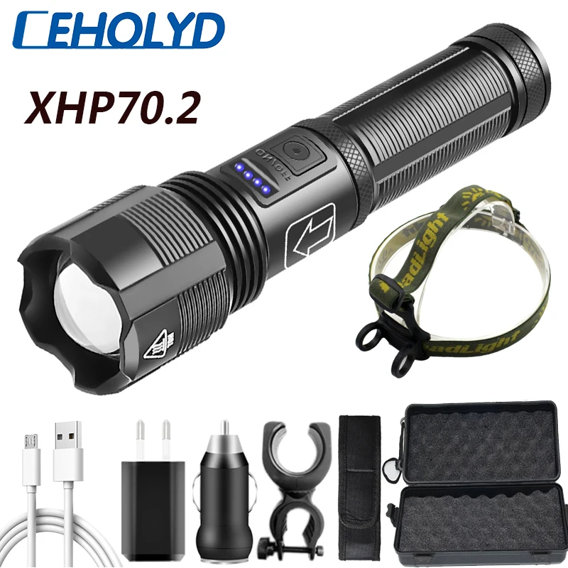 Светодиодный фонарик XHP70.2, тактический охотничий фонарь с аккумулятором 18650, ААА, с зарядкой от Usb, масштабируемый, XHP50.2