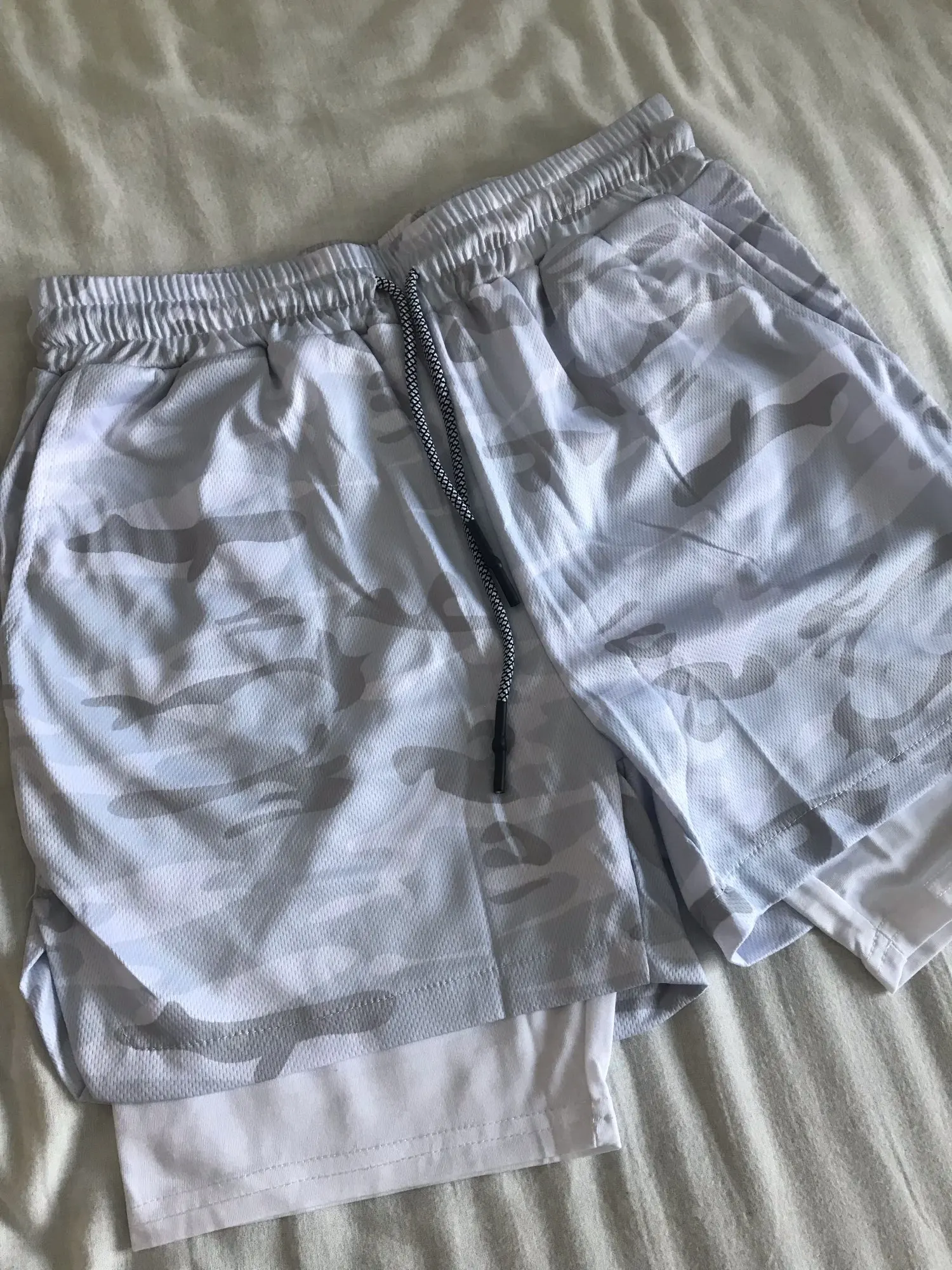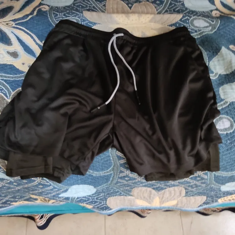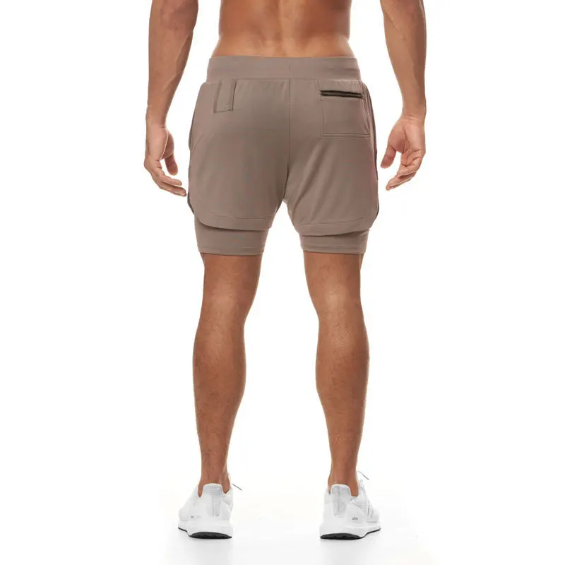 Мужские спортивные шорты, двухслойные джоггеры, шорты 2 в 1, для спортзала, фитнеса, бермуды со встроенным карманом, быстросохнущие пляжные штаны