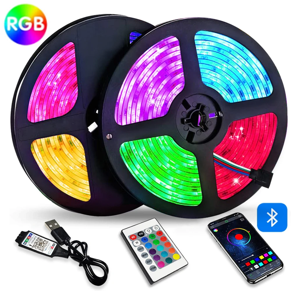 Светодиодные ленты RGB 5 в 28355050 с Bluetooth, 24 клавиши, инфракрасный пульт дистанционного управления, 5 м, светодиодная лента для ТВ, ПК, управление через приложение