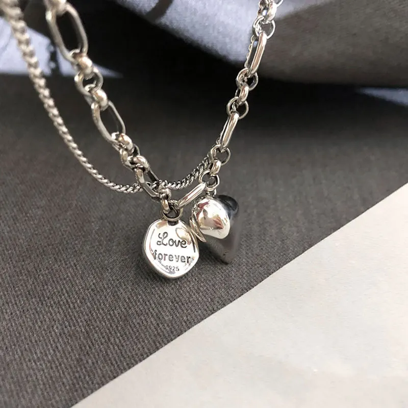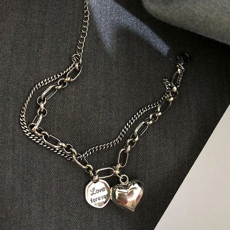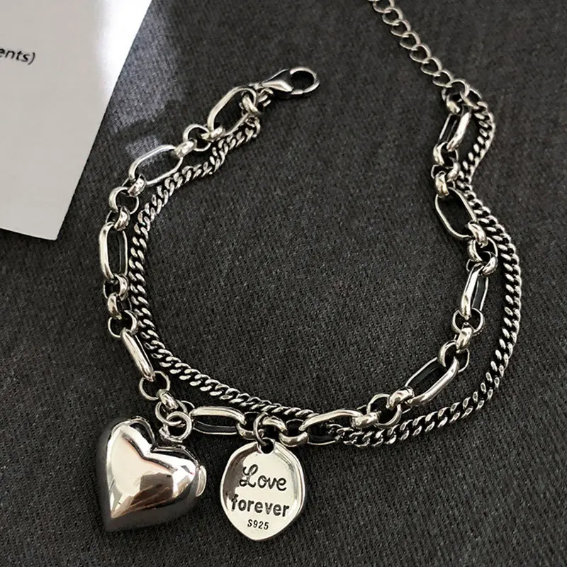 QMCOCO серебряный браслет Модный панк Винтажный сладкий пары влюбленные Двойная Цепочка в форме сердца ювелирные изделия Подарки для женщин девушек