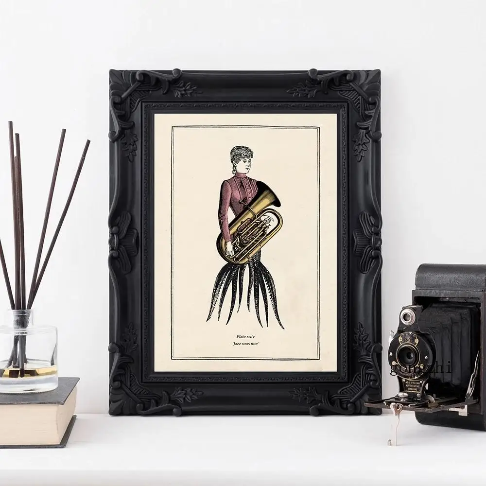 Винтажный Забавный музыкальный постер в виде осьминога, Ретро Готический стимпанк, холст с рисунком и принтом, Настенная картина для туалета, декор для ванной и дома