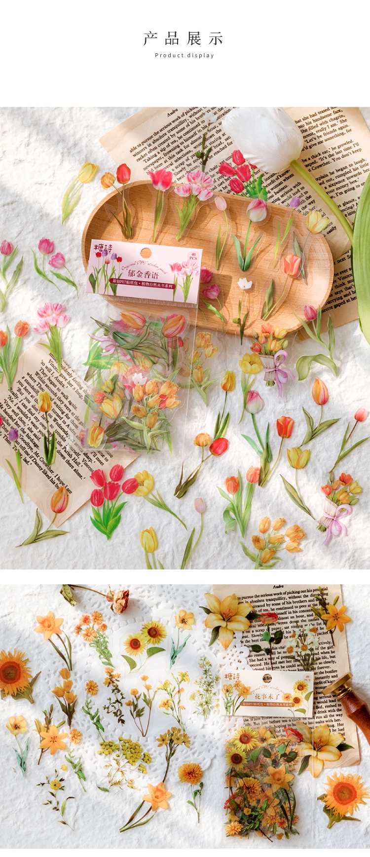 40 звёзд, кавайные канцелярские наклейки, растения, цветы, рукодели...