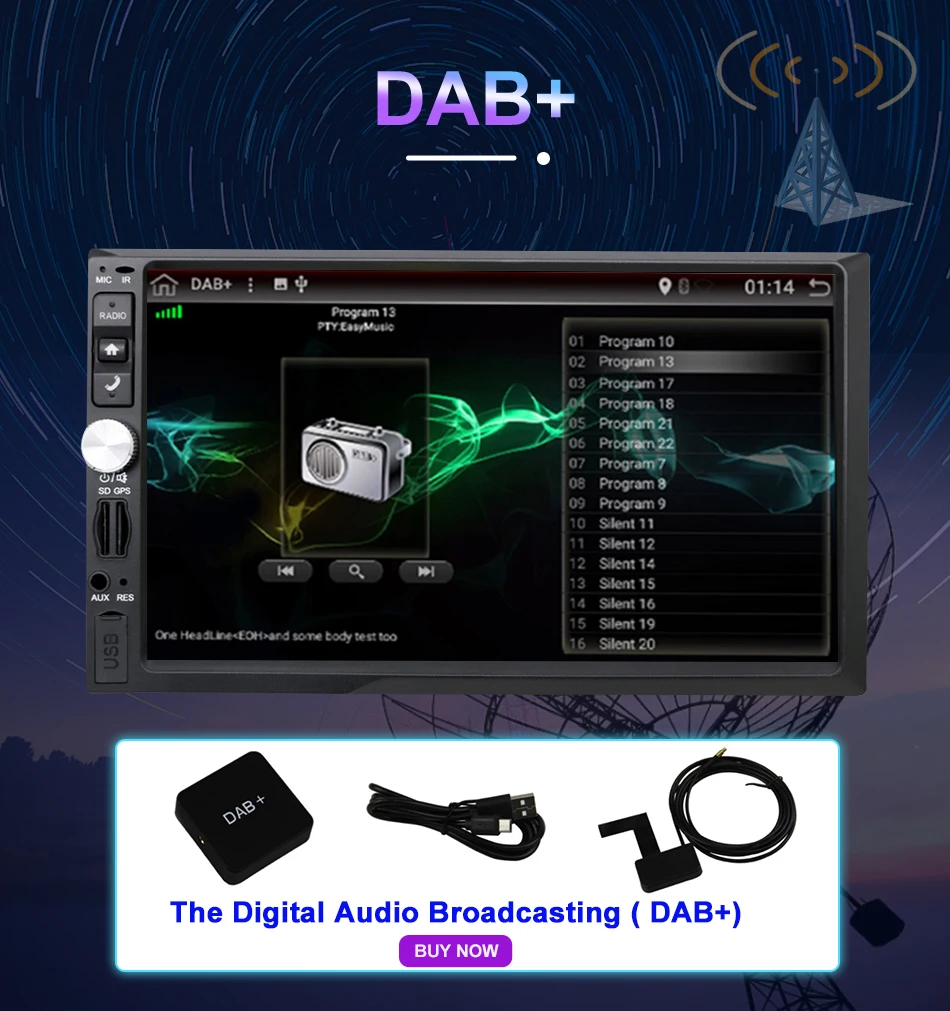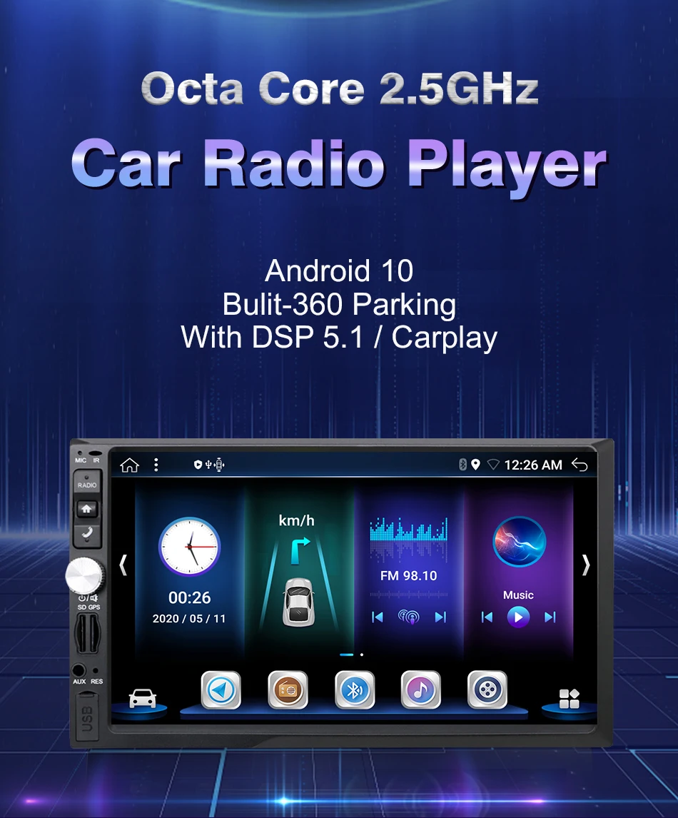 Автомагнитола Eunavi универсальная, мультимедийный плеер на Android 10, с 7 "экраном HD, GPS, типоразмер 2 Din